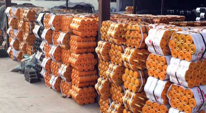 改向滾筒常用于改變輸送帶的運行方向,也有用于壓緊輸送帶,使之在某一滾筒上保持一定圍包角度。改向滾筒僅承受壓力,不傳遞轉矩,結構上無特殊要求。改向滾筒有鋼制光面滾筒和光面包(鑄)膠滾筒。包(鑄)膠的目的是為了減少物料在其表面黏結,以防輸送帶跑偏與磨損。