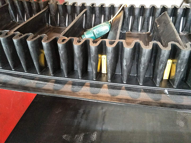 2、檔邊和橫隔板是用二次硫化的方法與基帶連接的,具有很高的連接強度。