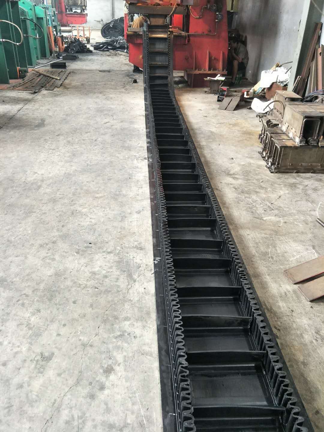 大傾角輸送帶一般都是有擋邊和隔板組合而成的,在設(shè)計的時候考慮到運輸?shù)奈锪希€有各種角度的問題,所以它設(shè)計的主要作用是為了防止物料在運輸?shù)倪^程當(dāng)中出現(xiàn)灑落以及隔板等作用,起到承托物料的作用。
