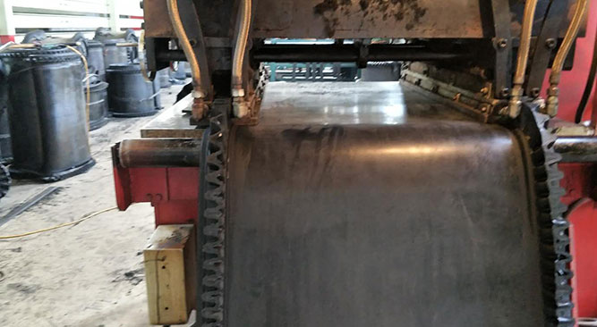 在這些都了解清楚之后,其實擋邊輸送帶跟其他的環(huán)形輸送帶還有各種耐高溫輸送帶等的制作工藝方面沒有很大的區(qū)別。基帶外部采用覆蓋膠,內部采用普棉、尼龍、聚酯、鋼絲繩芯等多種材質。裙邊和橫隔板是通過模具加入硅油制作而成,根據產品尺寸不同,膠料有一定的規(guī)格要求。大致流程是:將膠料加入模具后增壓,上鍋3-4次,上鍋兩人一前一后 操作,按要求硫化成型后就下鍋,用工具豎起擋邊并將毛邊清理干凈。