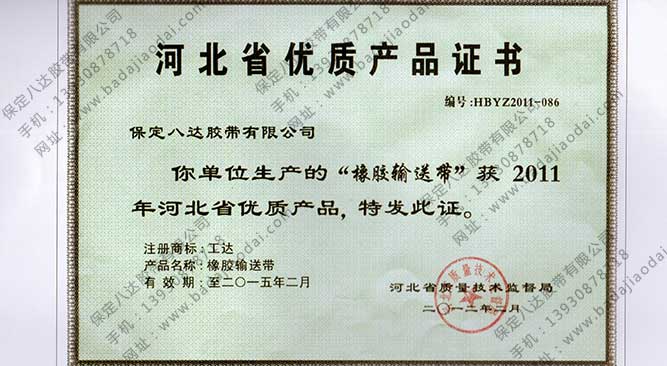 河北省優質產品證書
