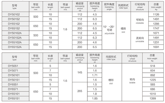 DY移動式皮帶機技術參數