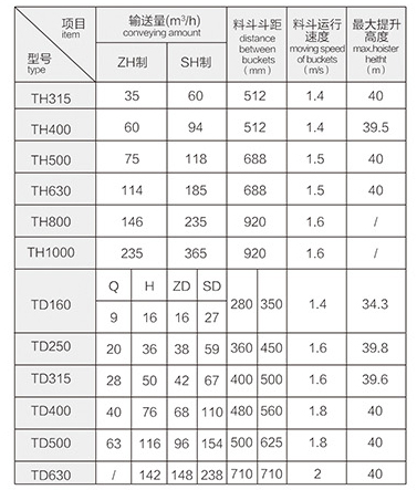 4、TD、TH型斗式提升機技術(shù)參數(shù)