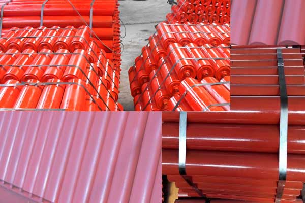 此圖是某客戶定制的一批托輥產品,準備裝貨的時候。