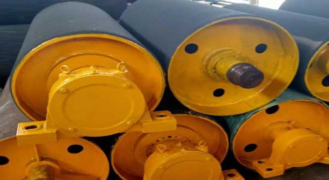 傳動滾筒從制作材料上來分有鋼板卷制焊接、鑄鋼及鑄鐵3種。從結構型式上來分有裝配輻板式、輻條式、整體輻板式3種。另外,滾筒表面也有光面、包膠、鑄膠等型式;其中,以鋼板焊接裝配輻板式鑄膠滾筒應用為廣泛。