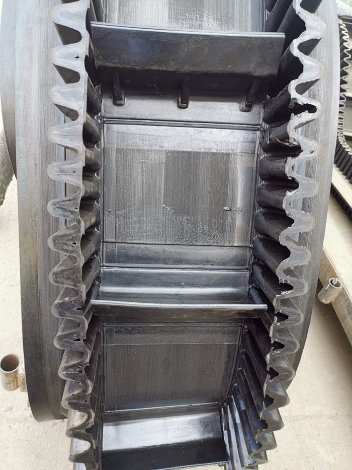 擋邊裙邊輸送帶采用高強(qiáng)度、伸長(zhǎng)率小、曲撓性良好的骨架材料為強(qiáng)力層,傳動(dòng)能力強(qiáng),抗拉強(qiáng)度高,采用比較大的初張緊理,膠料采用高質(zhì)量的聚氯乙烯膠,橫向溫度性佳,耐熱,耐油,耐疲勞,耐磨性好,可以長(zhǎng)期的使用,是使用比較多的一種輸送帶。