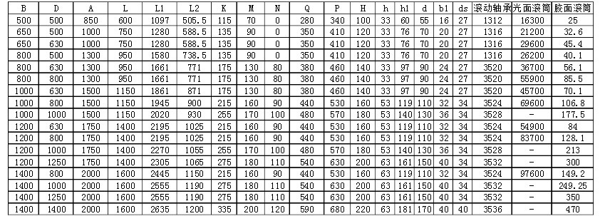 膠面改向滾筒技術參數