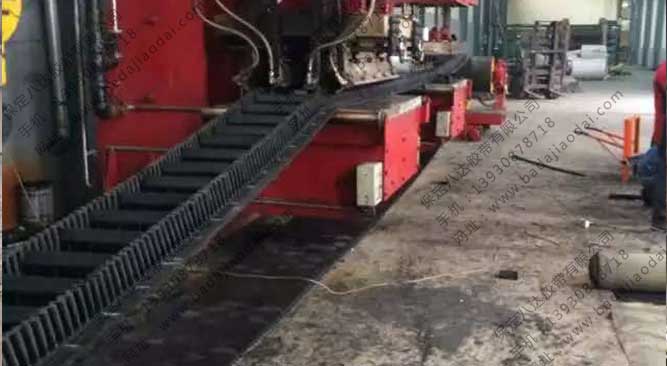 波形擋邊帶是由上下覆蓋膠,帶芯組成的平行基帶與內貼置防撕裂帆布層外覆橡膠的波狀擋邊經二次硫化加工而成的裙邊輸送帶。